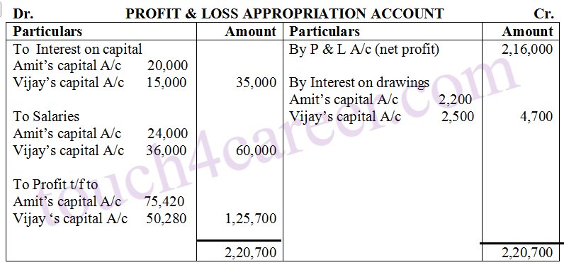Net profit for the year ended 31st March,2025 was Rs 2,16,000. Interest charged on drawings was Rs 2,200 for Amit and Rs 2,500 for Vijay.