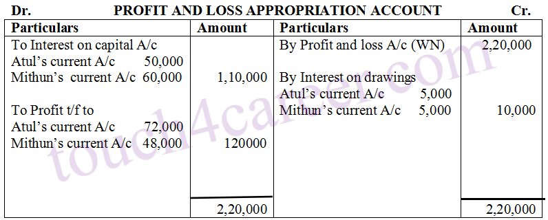Capital accounts (fixed): Atul – Rs 5,00,000 and Mithun – Rs 6,00,000