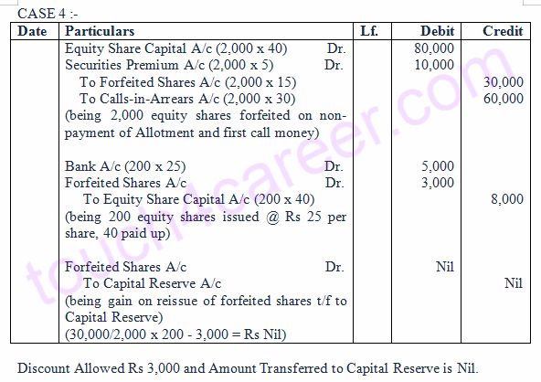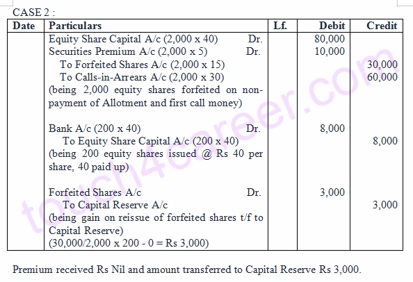 Case 2 : If 200 of these shares were reissued as Rs 40 paid-up for Rs 40 per share.