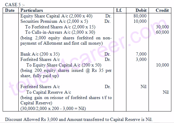 Case 5 : If 200 of these shares were reissued as Rs 35 per share as fully paid-up.