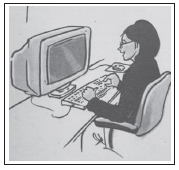 21. Identify the dimensions of the business environment illustrated by the picture given below in which Sapna who has joined the workforce recently is working on an accounting software.