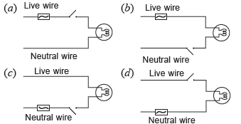 3. Which circuit shows the correct and safe position for the fuse and switch?