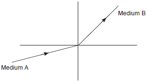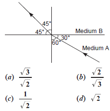 16. Figure shows a ray of light as it travels from medium A to medium B. Refractive index of the medium B relative to medium A is