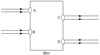 12. Beams of light are incident through the holes A and B and emerge out of box through the holes C and D respectively as shown in the figure. Which of the following could be inside the box?