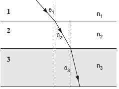 In the diagram shown above n1, n2 and n3 are refractive indices of the media 1, 2 and 3 respectively. Which one of the following is true in this case?