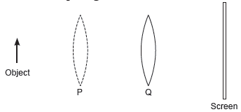 32. When a lens in placed at Q, a sharp image is formed on the screen. The image formed is real, inverted and diminished. When the lens is moved to P, another sharp image is formed on the screen.