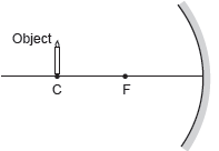 If the student wishes to point the mirror to another object so as to obtain a virtual enlarged image, what should be the position of object with respect to the mirror?