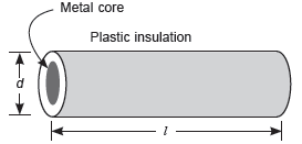 Plastic insulation surrounds a wire having diameter d and length l as shown above. A decrease in the resistance of the wire would be produced by an increase in the