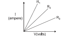14. A student carries out an experiment and plots the V-I graph of three samples of nichrome wire with resistances R1, R2 and R3 respectively. Which of the following is true?