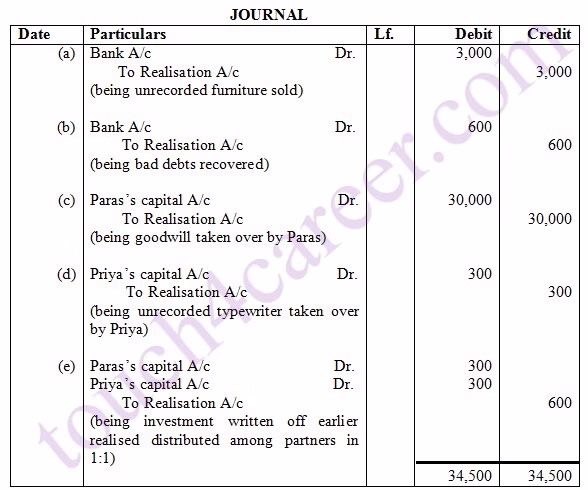 (c) Paras agreed to takeover the firm’s goodwill (not recorded in the books of the firm), at a valuation of Rs 30,000.