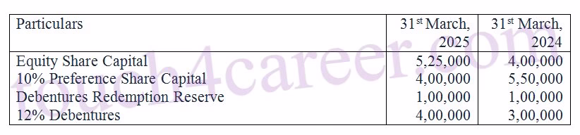 4. 12% Debentures of face value Rs 1,00,000 were issued on 31st March, 2025.