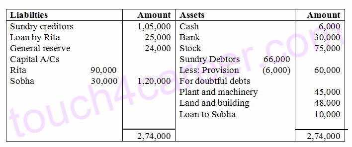 (e) Rita took the goodwill of the firm at a value of Rs 30,000.