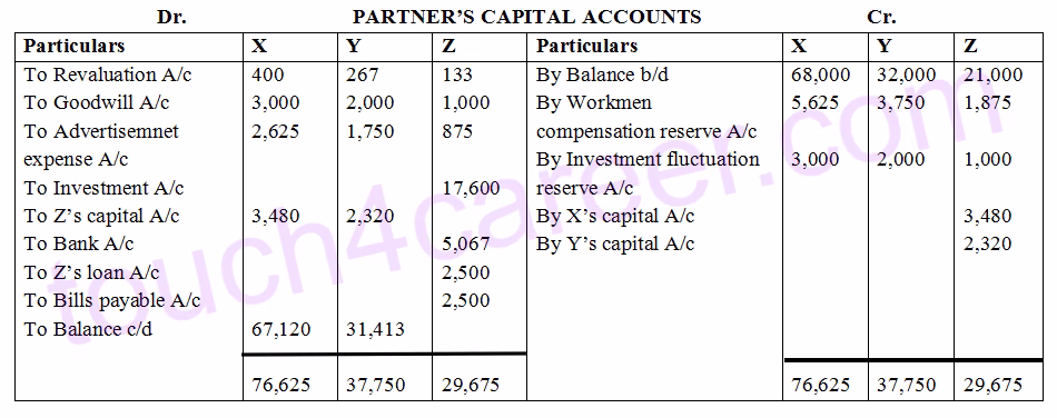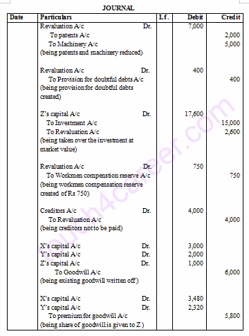 Z’s share in goodwill = 34,800 x 1/6 = Rs 5,800